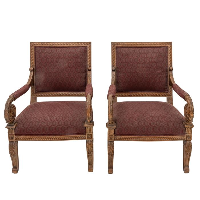 Cuenta con brazos torneados y con soportes tipo cabriolé