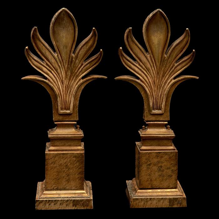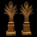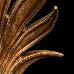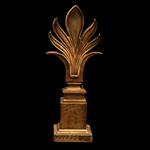 Lámina metálica, acabado dorado; base cuadrangular escalonada, remate a manera de palma de estilo Art Deco