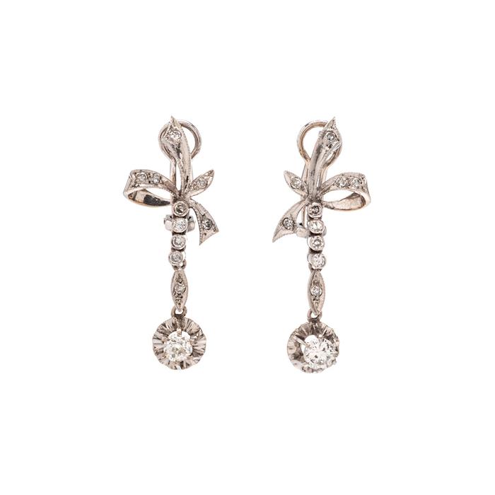Subasta 1245T, Lote # 342 Par de aretes vintage con diamantes en plata paladio. ~0.90 ct. Peso: 4.8 g. Estimado $4,800-6,000