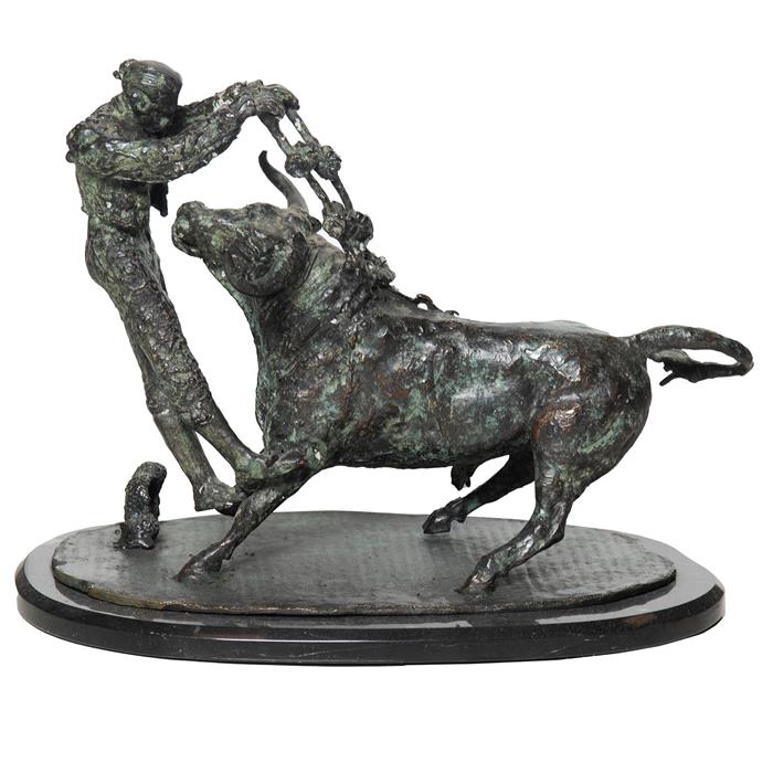 Bronce, patinado en color verde; base de mármol negro