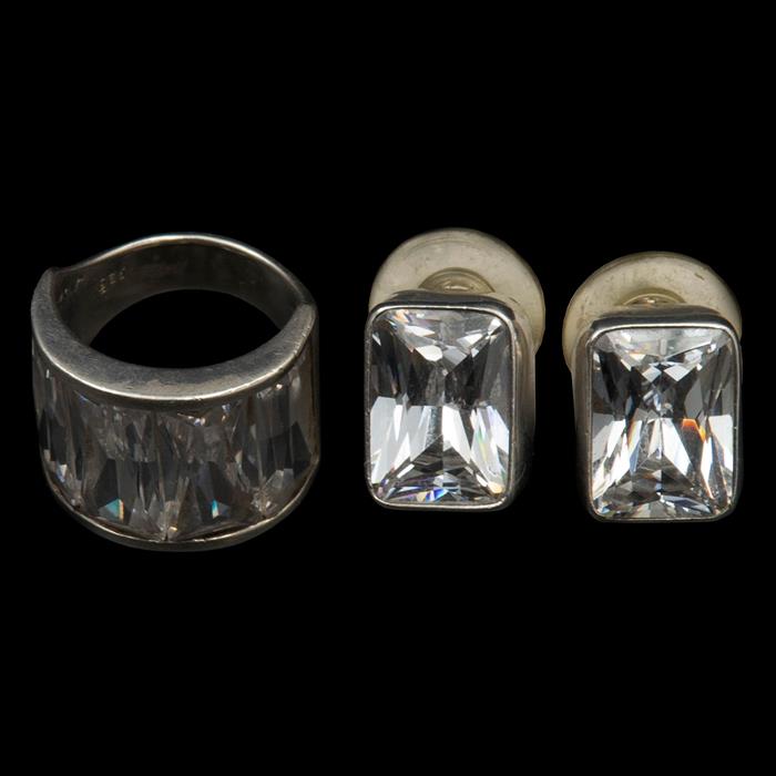 Anillo y par de aretes con simulantes en plata .925.