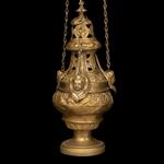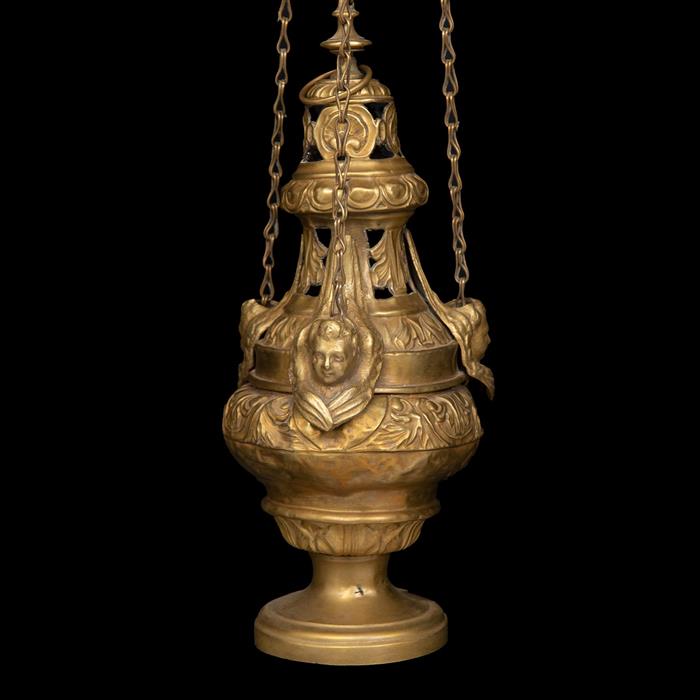 Bronce laminado, repujado con relieves de figuras vegetales y serafines, remate calado