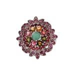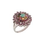 Subasta 1248T, Lote # 312 Anillo con esmeralda, turmalinas y rodalitas en plata .925. Talla; 7. Peso: 6.5 g. Estimado $1,300-2,000