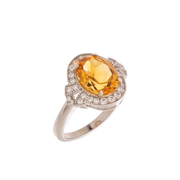 Anillo con citrina y circonia en plata .925.