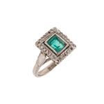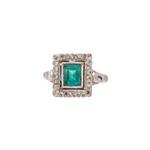 Subasta 1248T, Lote # 336 Anillo vintage con simulante y diamantes en plata paladio. 28 diamantes corte 8 x 8. Talla: 5. Peso: 3.3 g. Estimado $1,800-2,500