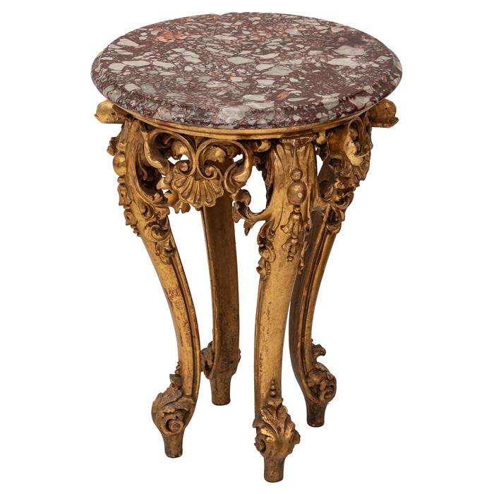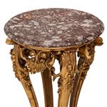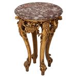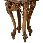 Elaborado en madera y cubierta circular de mármol veteado