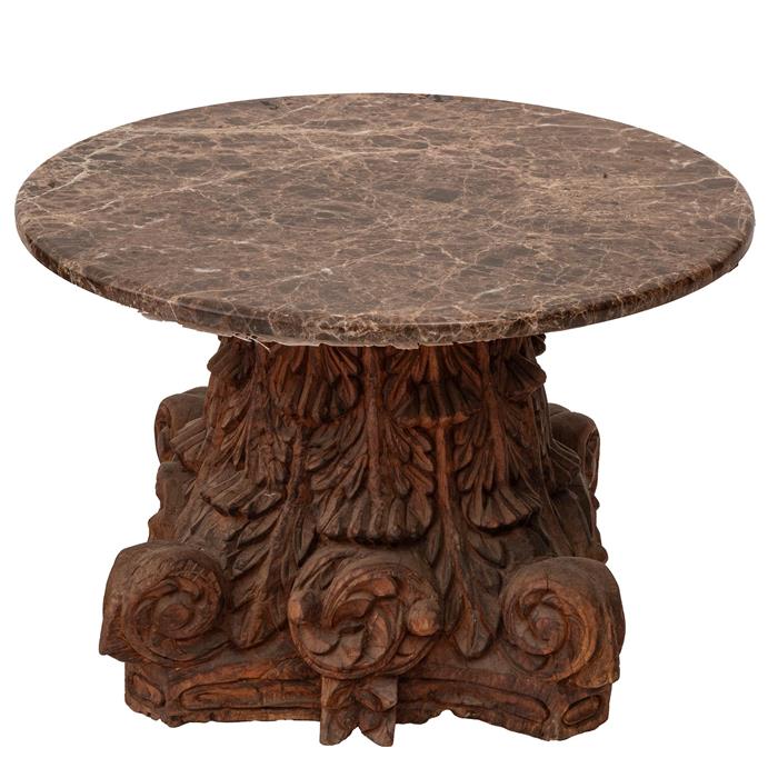 Elaborada en madera con cubierta circular de mármol