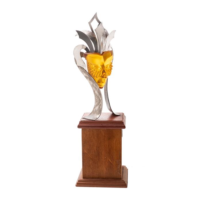Escultura de mascara Veneciana tallada en ámbar y plata .925.