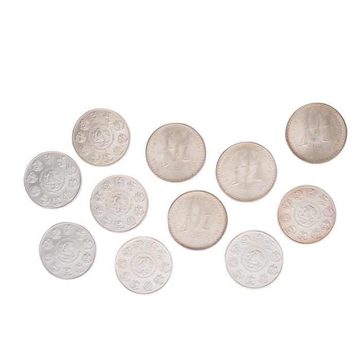 Subasta 1248T, Lote # 357 Once monedas onzas de plata ley .999 y .925. Peso: 320.5 g. Estimado $4,500-6,000