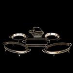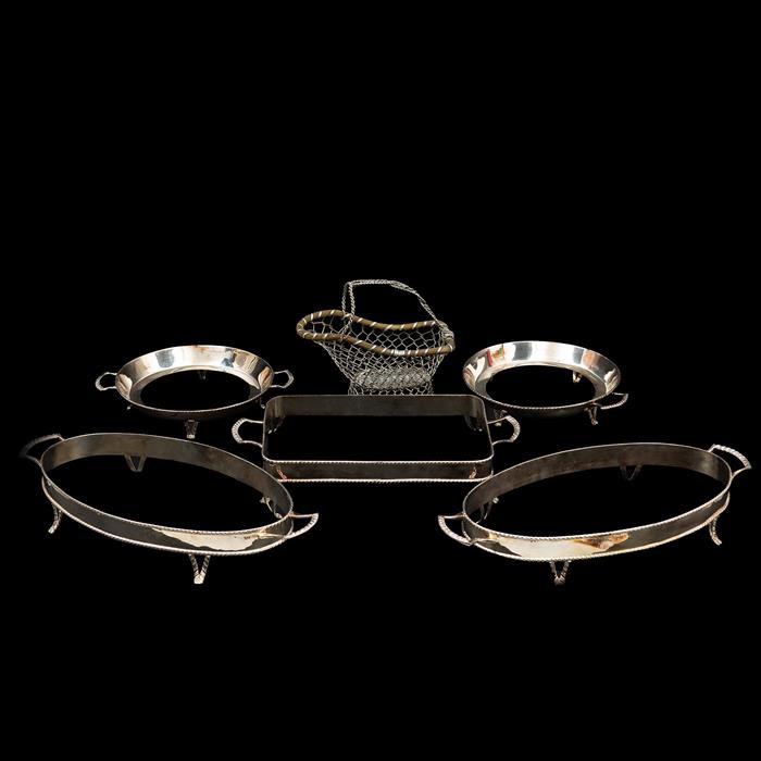 Consta de: 2 portarrefractarios ovales, 2 portarrefractarios redondos, portarrefractario rectangular, canastilla portabotellas
