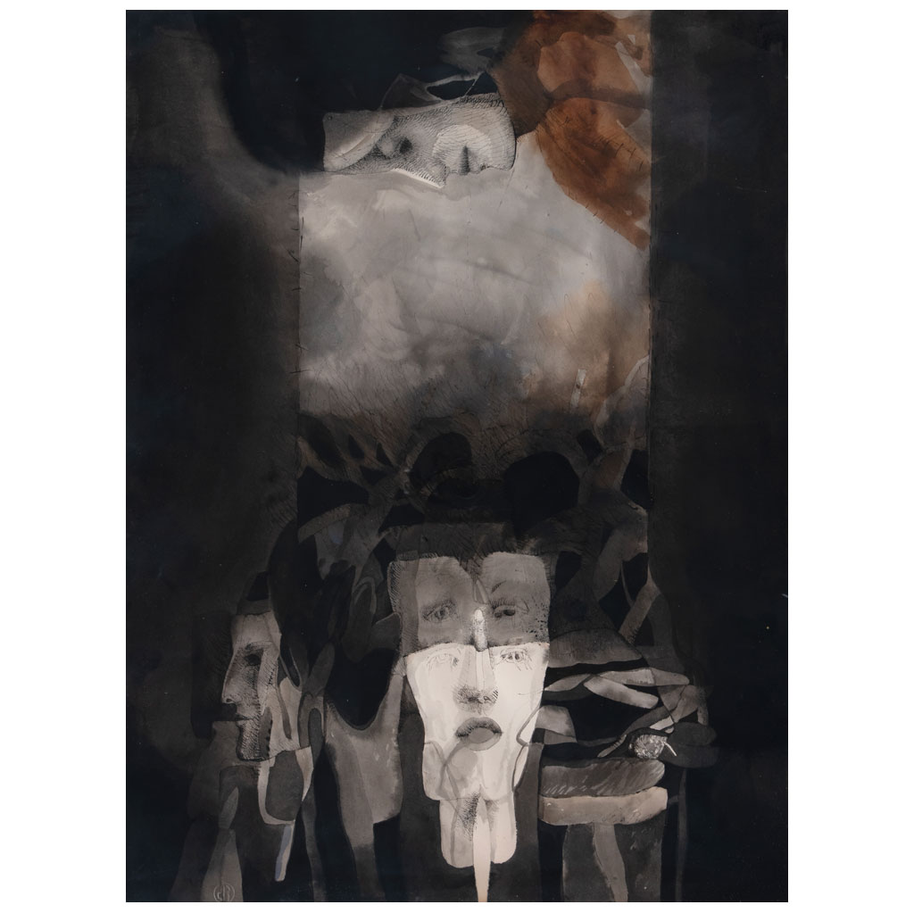 Subasta 1183, Lote # 236 JUAN MANUEL DE LA ROSA (Sierra Hermosa, Zacatecas, 1945 - México, 2021) Sin título Firmada y fechada 77 Tinta sobre papel Con sello del artista. 70.5 x 56.5 cm Estimado $15,000-26,000