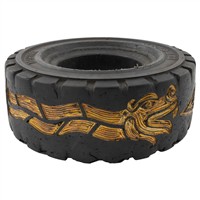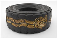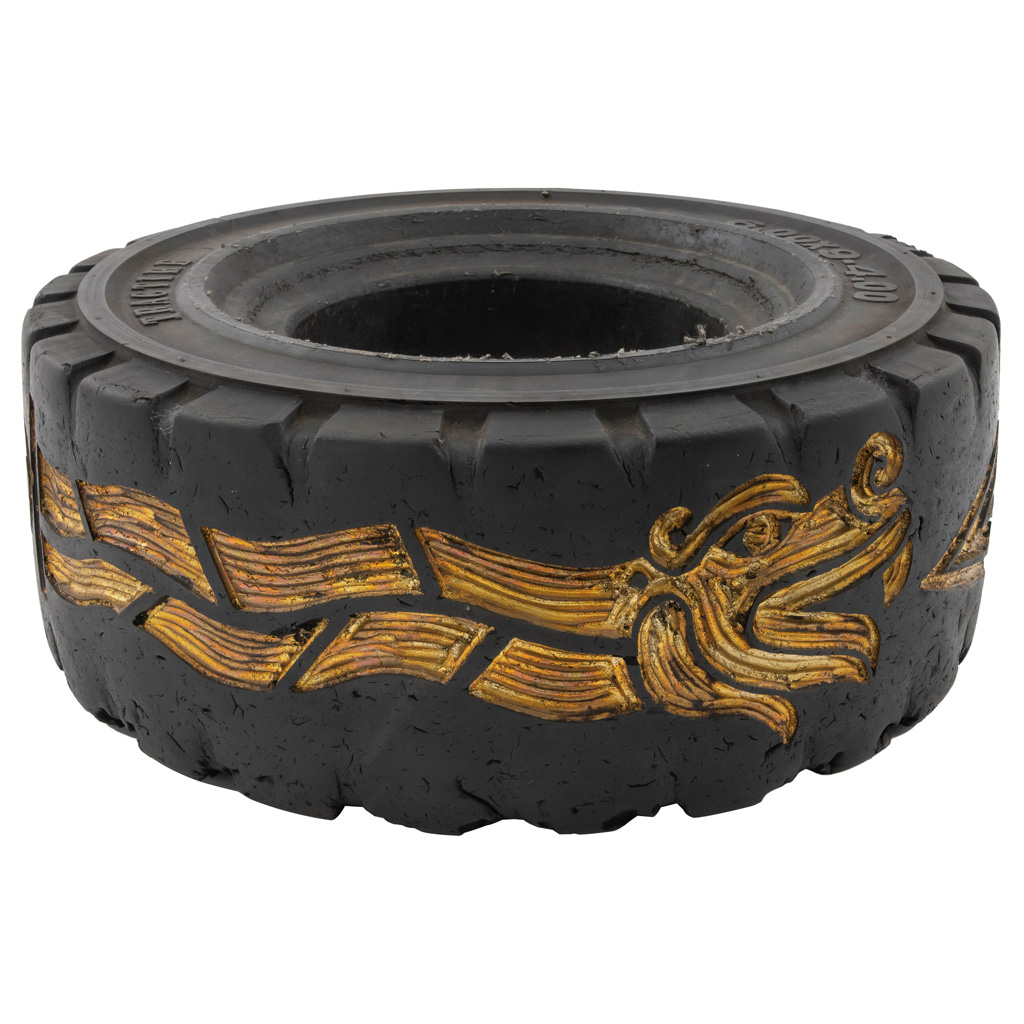 Llanta de montacarga tallada en bajo relieve con hoja de oro