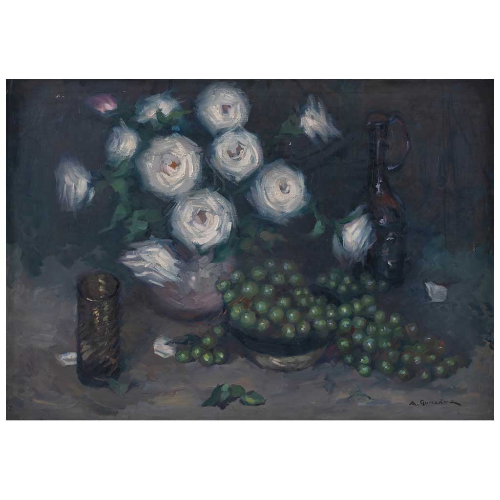 Subasta 1296T, Lote # 99 ALFREDO GONZÁLEZ (México) Naturaleza muerta Firmado Óleo sobre tela Presenta perforación. 70.5 x 100.5 cm Estimado $12,000-20,000