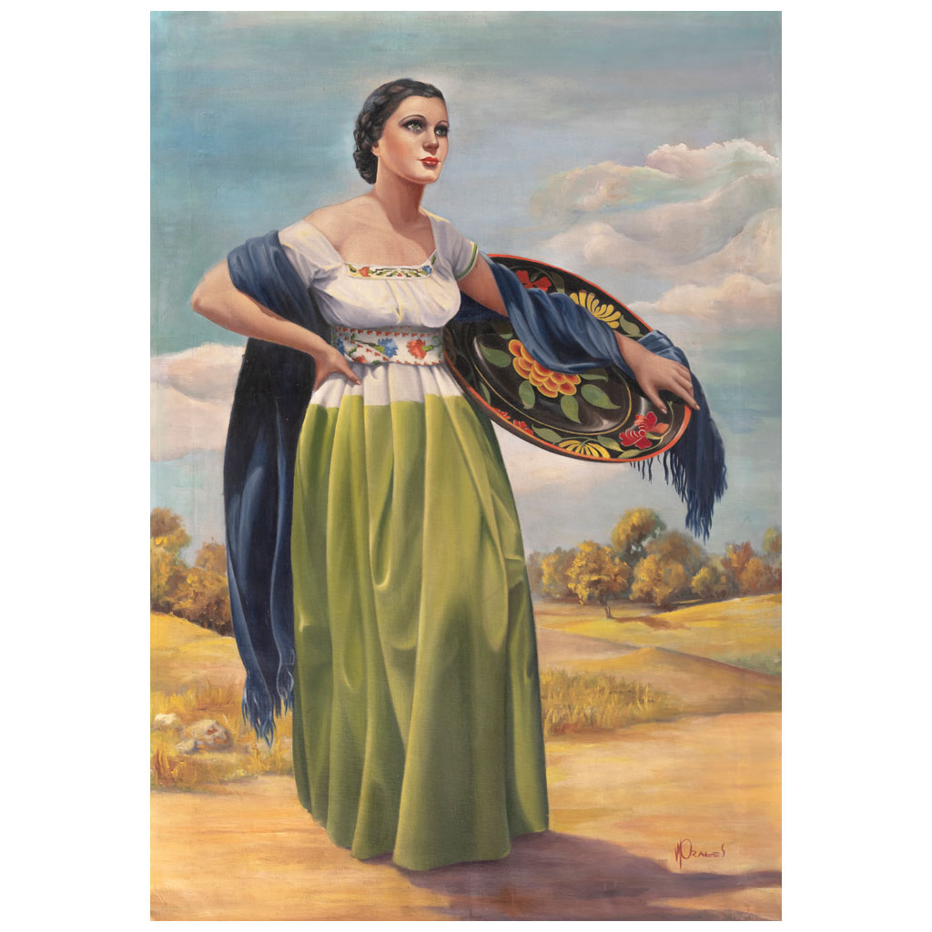 VICENTE MORALES (México) India michoacana Firmado Óleo sobre tela Presenta detalles de conservación y restauración. 108 x 75 cmEstimado $20,000-30,000
