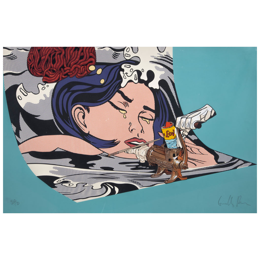 Subasta 1183, Lote # 249 EMILIANO GIRONELLA PARRA (Ciudad de México, 1972 - ) Homenaje a Lichtenstein, 2024 Firmada Serigrafía y collage 30 / 50 Con constancia de autenticidad de El Aire Centro de Arte. "Con una gran inquietud de búsqueda, Emiliano utiliza muchas técnicas y formas de expresión, las alinea y traduce para luego escalarlas, fragmentarlas, distorsionarlas y recrearlas artísticamente de una manera simplificada, alegre y dramática, que se percibe en toda su obra. Emiliano ha llegado a este punto en su vida y lo veremos cada vez más representando a nuestro país con una conciencia tanto histórica como cultural y social". Eduardo Burillo. Fuente consultada: BURILLO, Eduardo. "Emiliano Gironella Parra. Plástica y maldad". México. Revista de la Universidad de México, mayo de 2011, pág. 56. 61 x 93 cm medidas totales Estimado $20,000-30,000
