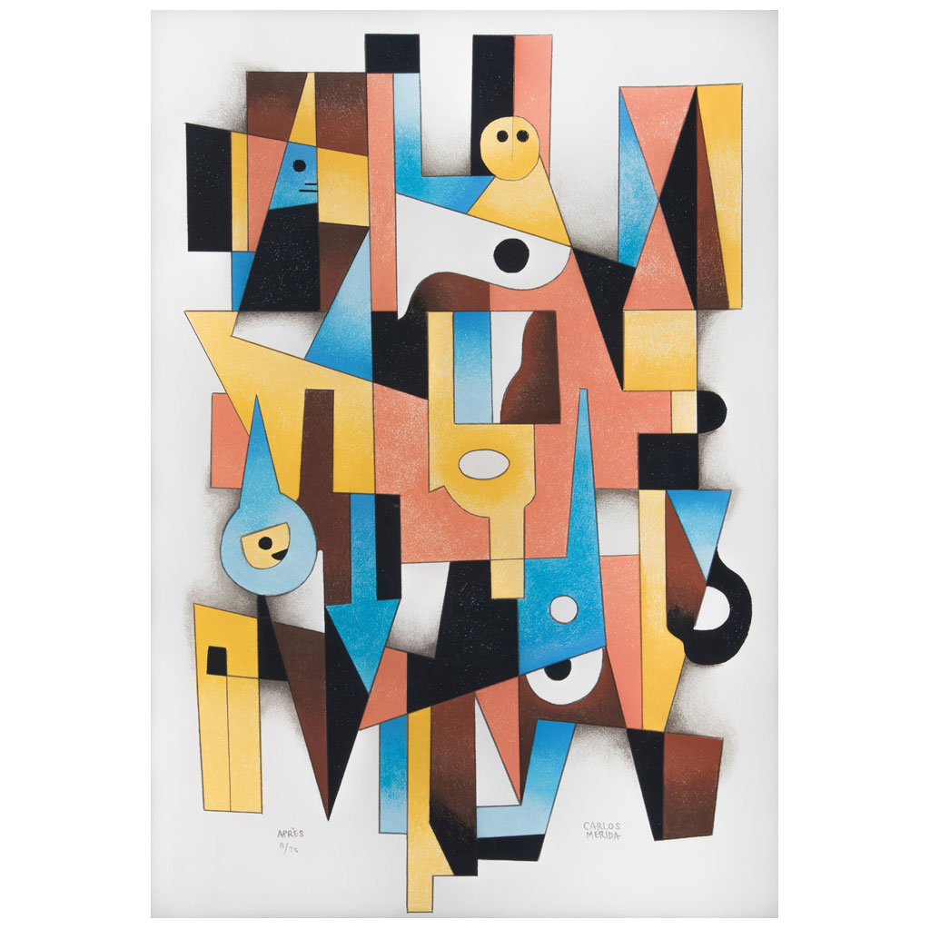 CARLOS MÉRIDA (Quetzaltenango, Guatemala, 1891 - Ciudad de México, 1984) Planos en armonía Firmada en malla Serigrafía 8 / 75 Aprés, edición póstuma Con documento de autenticidad de Enrique Humberto Cattaneo y Cramer adherido al reverso. 70 x 49 cm medidas totales Estimado $15,000-20,000