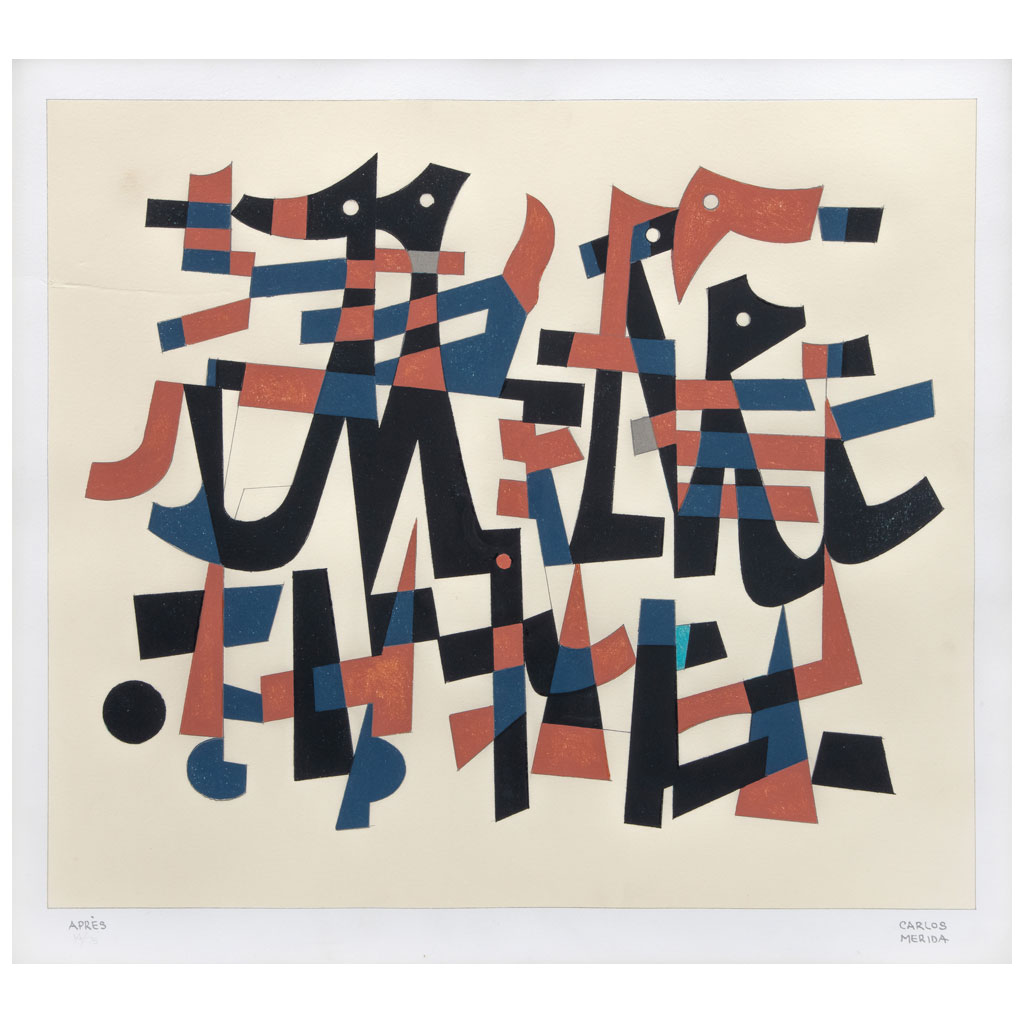 CARLOS MÉRIDA (Quetzaltenango, Guatemala, 1891 - Ciudad de México, 1984) Ritmo lírico Firmada en malla Serigrafía 14 / 75 Aprés, edición póstuma Con documento de autenticidad de Enrique Humberto Cattaneo y Cramer adherido al reverso. 47 x 54 cm medidas de la imagen 56 x 60 cm medidas del papel Estimado $15,000-20,000