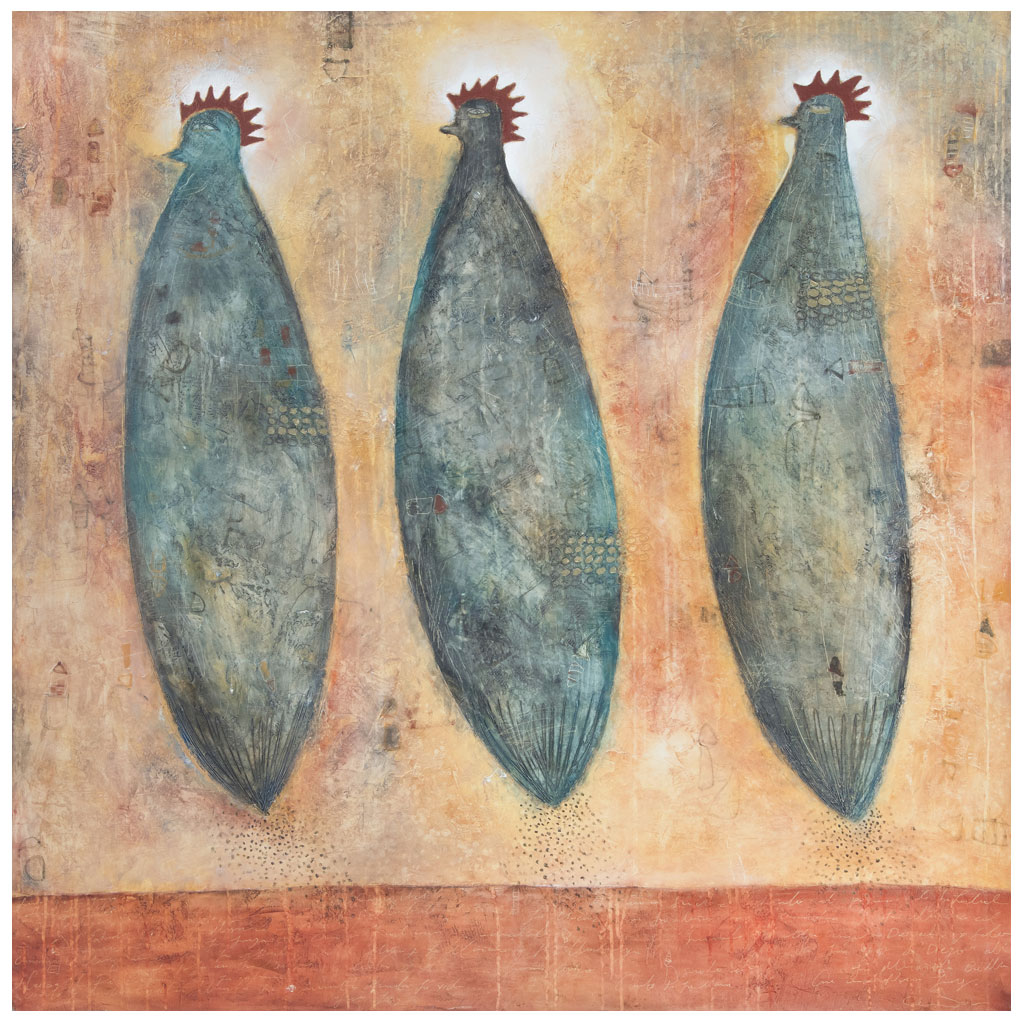 Subasta 1183, Lote # 229 AMADOR MONTES (Oaxaca, Oaxaca, 1975 - ) Los tres Firmado Óleo sobre tela Con certificado de autenticidad de Galería Oscar Román. Presenta desprendimientos de capa pictórica. Amador Montes es reconocido por su singular manera de producir, al enfocarse en la parte emotiva y dejar de lado todo vínculo racional, valorando el papel del accidente y experimentación como inspiración. Sin duda en su obra se ve reflejado el distintivo imaginario de la esfera artística oaxaqueña, como podemos constatar en los distintivos elementos incluidos en su producción. Ha formado parte de exposiciones en recintos como la Sede de la ONU y Amsterdam Whitney Gallery, ambas en Nueva York, la Art of the World Gallery de Houston, Texas, dentro de la Ciudad del Vaticano, entre muchos otros. Fuente consultada: sitio oficial del artista www.amadormontes.com 150 x 150 cm Estimado $100,000-150,000