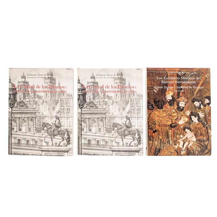 TOVAR DE TERESA, GUILLERMO. LOS ESCULTORES MESTIZOS DEL BARROCO NOVOHISPANO / LA CIUDAD DE LOS PALACIOS. MÉXICO, 1990. PIEZAS: 3. a) Tovar de Teresa, Guillermo. Los Escultores Mestizos del Barroco Novohispano. Tomás Xuarez y Salvador de Ocampo (1673 – 1724). México: Banca Serfin, 1990. 4o. marquilla, 175 p. Introducción de Julián Meza. b) Tovar de Teresa, Guillermo. La Ciudad de los Palacios: Crónica de un Patrimonio Perdido. México: Vuelta, 1990. 4o. marquilla, 191; 191 p. Introducción: Enrique Krauze y José Iturriaga. Encuadernados en pasta dura. Piezas: 2. Total de piezas: 3.