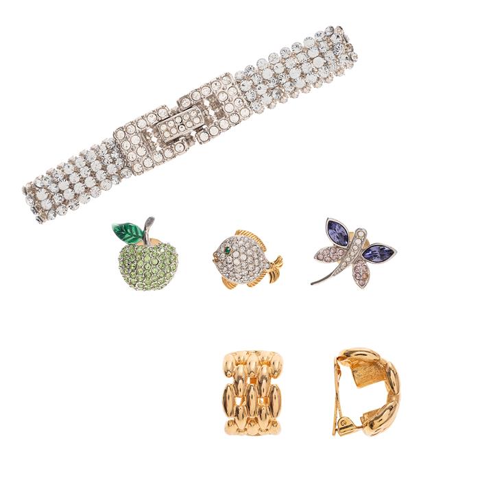 TRES PINES. PAR DE ARETES Y PULSERA CON SIMULANTES EN METAL BASE