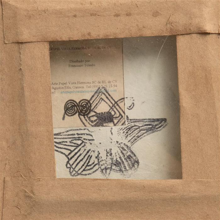Con etiqueta del Taller de Arte Vista Hermosa, San Agustín Etla, Oaxaca, al reverso.