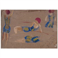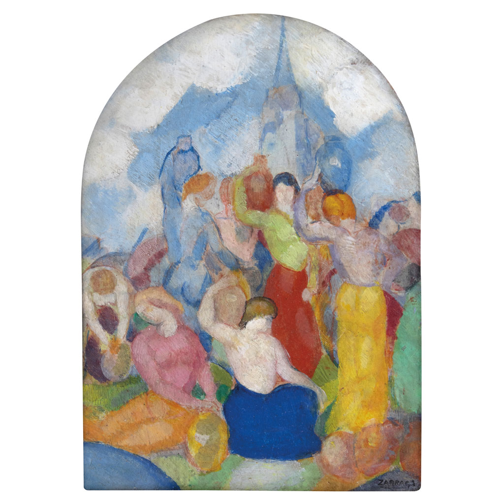 Subasta 1204, Lote # 180 ÁNGEL ZÁRRAGA (Victoria de Durango, 1886 - Ciudad de México, 1946) Porteuses de cruche & étude baigneuse Firmada Mixta sobre cartón Con dibujo y anotaciones al reverso. Procedencia: Artcurial Beurret Bailly Widmer, Basel, Suiza, Subasta de Arte Moderno y Contemporáneo, lote 112, 21 de junio de 2023; adquirida en Marambat de Malafosse, Toulouse, Subasta de Cuadros, Mobiliario, Objetos de Arte y Arte del Siglo XX, lote 95, 03 de diciembre de 2020. A lo largo de la producción de Ángel Zárraga apreciamos un estilo cambiante derivado de las múltiples influencias recabadas en su carrera, entre ellas están el cubismo, el simbolismo y el realismo, por destacar algunas que terminaron por constituir un lenguaje propio después de una larga vida de experimentación. Desde su juventud convivió con personajes clave de la escena cultural de la época, fue alumno de Justo Sierra, Amado Nervo y Julio Ruelas, además de ser amigo cercano de Jaime Torres Bodet. Entre 1902 y 1903 fue motivado por Luis G. Urbina, José Juan Tablada y Amado Nervo para que publicara sus primeros versos en la "Revista Moderna". A su ingreso a la Academia de San Carlos tuvo como compañeros a José Clemente Orozco, Diego Rivera, Roberto Montenegro y Saturnino Herrán, mientras que el equipo docente estaba conformado por maestros como José María Velasco y Santiago Rebull. Fue gracias a este último que se interesó por el clasicismo francés de Jacques-Louis David y Jean-Dominique Ingres, poniendo especial interés en la búsqueda de la perfección de la forma y del equilibrio compositivo, el estudio constante del cuerpo desnudo y la prevalencia de la figura humana como objeto precedente de representación. Estos principios se convirtieron para él en una promesa inquebrantable con su obra, mismos que le sirvieron para contrarrestar las tentaciones de la vanguardia. Se estableció en el viejo continente durante casi tres décadas, durante su estancia allí formó parte de los discípulos de grandes exponentes como Joaquín Sorolla e Ignacio Zuloaga, generó amistades con personajes importantes del momento y participó en proyectos y exposiciones con proyección mundial, recolectando grandes experiencias que marcaron su carrera como una de las más prolíficas de su momento. Tras el estallido de la Segunda Guerra Mundial y el avance de las tropas alemanas, se vio obligado a regresar definitivamente a México en 1940. A su llegada a la capital fue buscado por diversas instancias y personalidades de la cultura de nuestro país para continuar con su exitosa carrera. Fuentes consultadas: ECHEGARAY, Miguel Ángel et al. Ángel Zárraga. Primer realista mexicano del siglo XX. México. Gobierno del estado de Durango, 2006, pp. 9, 26-29 y 40, GREET, Michele et al. Ángel Zárraga. El sentido de la creación. México. CONACULTA, Museo del Palacio de Bellas Artes, Fundación Mary Street Jenkins, 2014, pp. 77-81 y NOVELO, María Luisa et al. Zárraga. México. Américo Arte Editores, Grupo Financiero Bital, 1997, pág. 26. 26.5 x 18.5 cm Estimado $120,000-180,000