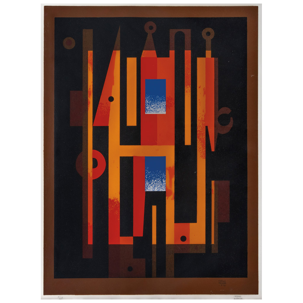 CARLOS MÉRIDA (Guatemala, 1891 - Ciudad de México, 1984) La casita encantada Firmada y fechada 1978 a lápiz y en malla Serigrafía 4 / 50 Publicada en: DE LA TORRE, Mario. Carlos Mérida en sus 90 años. México. Cartón y Papel de México S.A de C.V, Colección CPM, 1981, pág. 161.