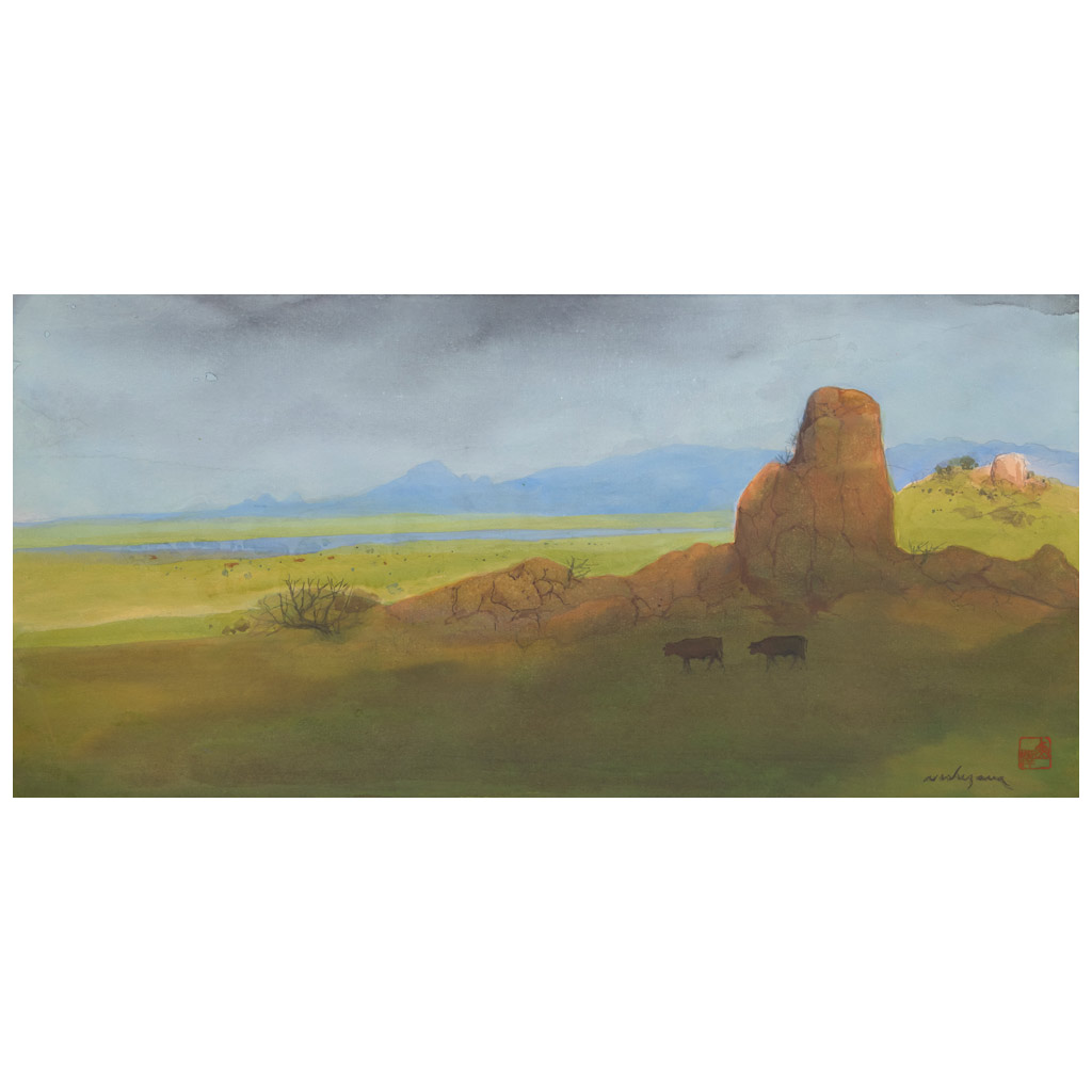 LUIS NISHIZAWA (Estado de México, 1918 - Ciudad de México, 2014) Despoblado Firmada y con gago-in al frente. Firmada y referenciada Edo. de México al reverso Tinta sumi-e sobre papel sobre madera Agradecemos a Gabriel Nishizawa por la verificación de autenticidad de esta obra, junio de 2025. 31 x 63.5 cm Estimado $42,000-60,000