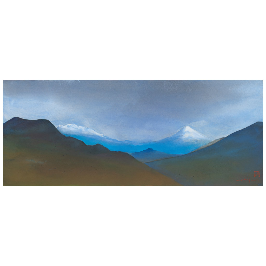 LUIS NISHIZAWA (Estado de México, 1918 - Ciudad de México, 2014) La tarde Firmada y con gago-in al frente. Firmada al reverso Acuarela y tinta sumi-e sobre papel sobre madera Agradecemos a Gabriel Nishizawa por la verificación de autenticidad de esta obra, junio de 2025. 36.5 x 89.5 cm Estimado $50,000-70,000