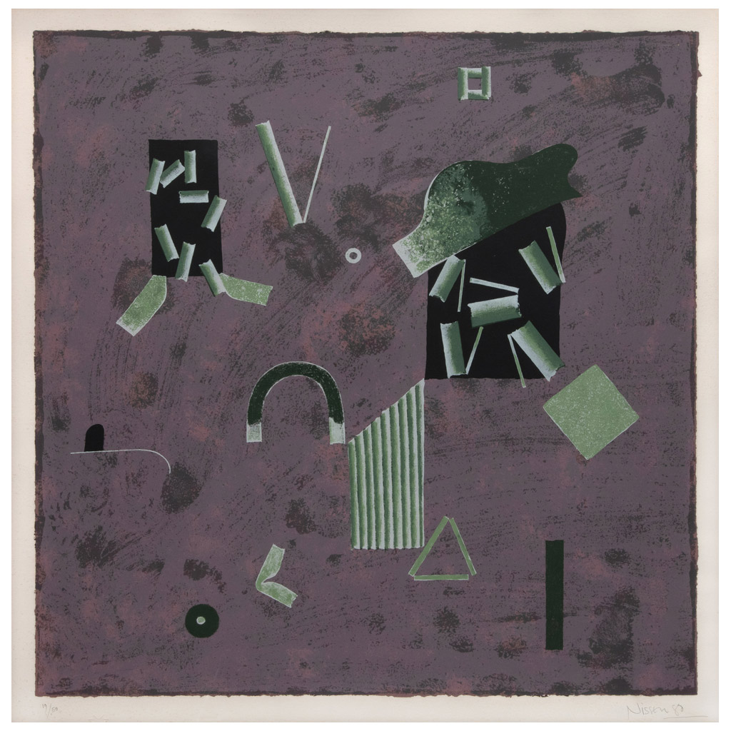 BRIAN NISSEN (Inglaterra, 1939 - ) Sin título Firmada y fechada 88 Serigrafía 19 / 50 Con sello de Ediciones Multiarte, Taller Enrique Cattaneo. Impresa por Ediciones Multiarte, Taller Enrique Cattaneo. Procedencia: perteneció al promotor cultural y coleccionista Ignacio Toscano. 49.5 x 49.5 cm medidas de la imagen 54 x 54 cm medidas del papel Estimado $8,000-10,000