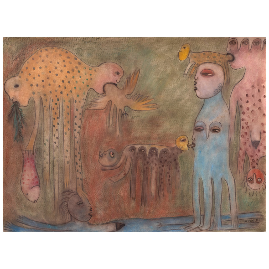 Subasta 1204, Lote # 17 MANUEL MENDIVE (La Habana, Cuba, 1944 - ) Sin título Firmado y fechado 1987 Pastel sobre papel Procedencia: adquirido directo al artista en The October Gallery, Londres, Reino Unido. Presenta detalles de conservación. "El arte de Mendive es trascendente. Va más allá de las barreras, las fronteras nacionales y los arbitrarios límites políticos. Este arte de espiritualidad, esperanza, poder emocional y belleza diáfanos, ciertamente sirve como uno de los muchos vínculos que unen a las naciones, haciéndolas mirarse las unas a las otras con ojos frescos, sin prejuicios". Edward J. Sullivan. Fuente consultada: sitio oficial del artista www.mendiveart.com 69.5 x 94.25 cm Estimado $120,000-180,000