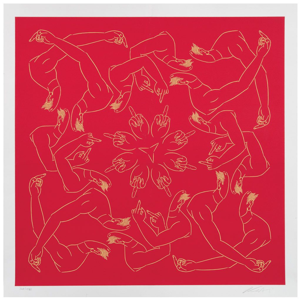 AI WEIWEI (China, 1957 - ) Middle Finger in Red Firmada Serigrafía 328 / 1285 Impresa por Make-Ready, Londres. Publicada por Avant Arte, Londres. Publicada en: sitio oficial de Avant Arte www.avantarte.com Presenta detalles de conservación. 54.5 x 54.75 cm medidas de la imagen 59.75 x 60 cm medidas del papel Estimado $15,000-25,000