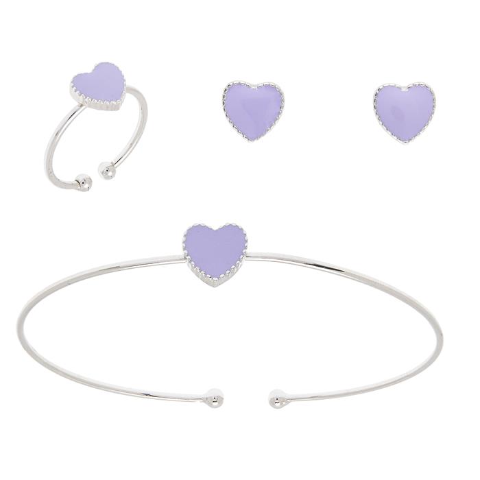 JUEGO DE ANILLO, PAR DE ARETES Y PULSERA CON ESMALTE EN METAL CON RODIO DE LA FIRMA STEVE MADDEN