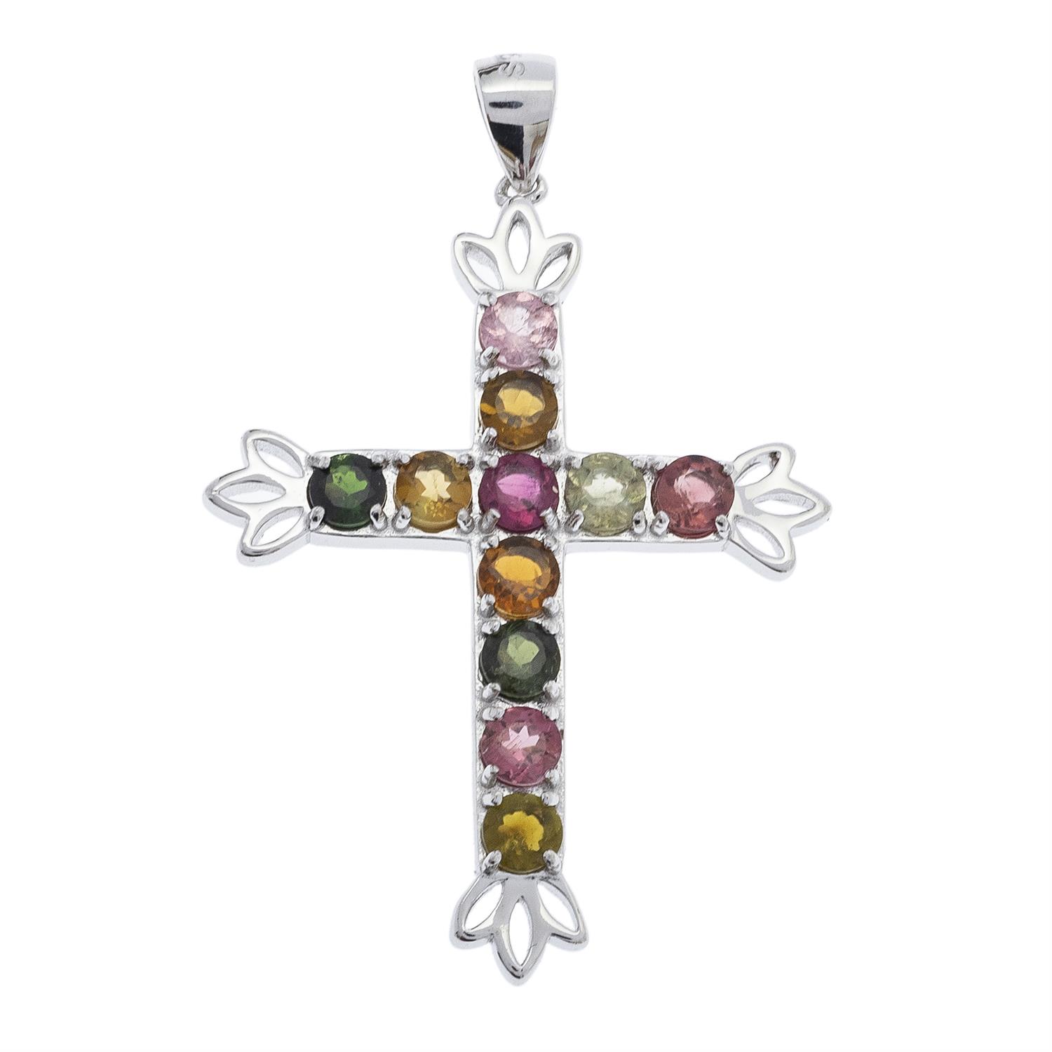 Subasta 1297T, Lote # 226 CRUZ CON TURMALINAS EN PLATA .925 Pasa cadena articulado. Tamaño: 4.7 cm x 3.0 cm aprox. Peso: 4.5 g. Estimado $1,300-4,000