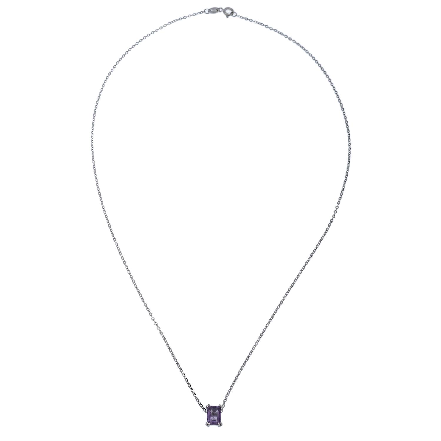 Subasta 1297T, Lote # 227 GARGANTILLA Y PENDIENTE CON AMATISTA EN PLATA .925 Broche de reasa. Largo: 44.0 cm aprox. Peso: 1.6 g. Estimado $1,300-4,000