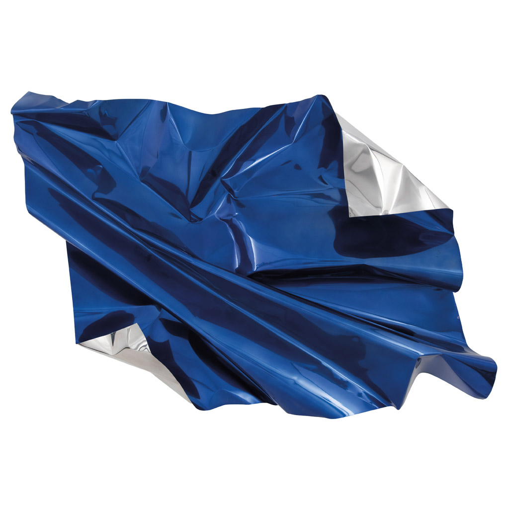 Subasta 1204, Lote # 241 ALDO CHAPARRO (Perú, 1965 - ) Mx. Blue silver, July 27 2020 14:55 Sin firma Pintura electrostática en acero inoxidable Con certificado de autenticidad del artista. Agradecemos al Maestro Aldo Chaparro por la verificación de autenticidad de esta obra, julio de 2025. Las esculturas de Aldo Chaparro hechas con acero doblado son el resultado de una cercana relación con el material. Este elemento ha estado presente en la humanidad desde la antigüedad y en esta ocasión remite a los límites infringidos entre arte y el diseño, encontrando el campo perfecto para explorar y expandir las convergencias de estas disciplinas. Su delgadez, pulcritud y calidad reflejante solo se pueden lograr con el uso de maquinaria, debido a eso, la naturaleza violenta de las esculturas crea un contraste con el estado original de estas hojas, ya que el artista las patea, dobla y salta sobre ellas usando nada más que su cuerpo y su propio peso. Los objetos resultantes de su confrontación con el material son evidencia, perpetúan el proceso de transformación por el que el material se transforma en un objeto artístico. De esta manera, sus hojas de acero arrugadas pueden interpretarse como autorretratos, ya que capturan la energía liberada por Aldo Chaparro en una fecha y hora específicas. A medida que la precisión del reflejo en las láminas de acero se distorsiona, las esculturas nos permiten experimentar la realidad de forma paralela. Activan nuestro sentido de exploración para que la vista se transforme en conocimiento utilizando la superficie de las esculturas como teatro. Los ojos triunfan sobre el sentido del tacto. Las esculturas crean reflejos de varias maneras muy diferentes. Mediante su poder de reflexión, transforman el cuerpo en una versión alternativa e intocable de nosotros mismos. Fuente consultada: sitio oficial del artista www.aldochaparro.com 82.5 x 128 x 18 cm Estimado $150,000-220,000