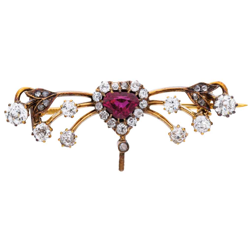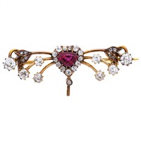 PRENDEDOR CON RUBÍ Y DIAMANTES EN ORO AMARILLO DE 14K