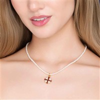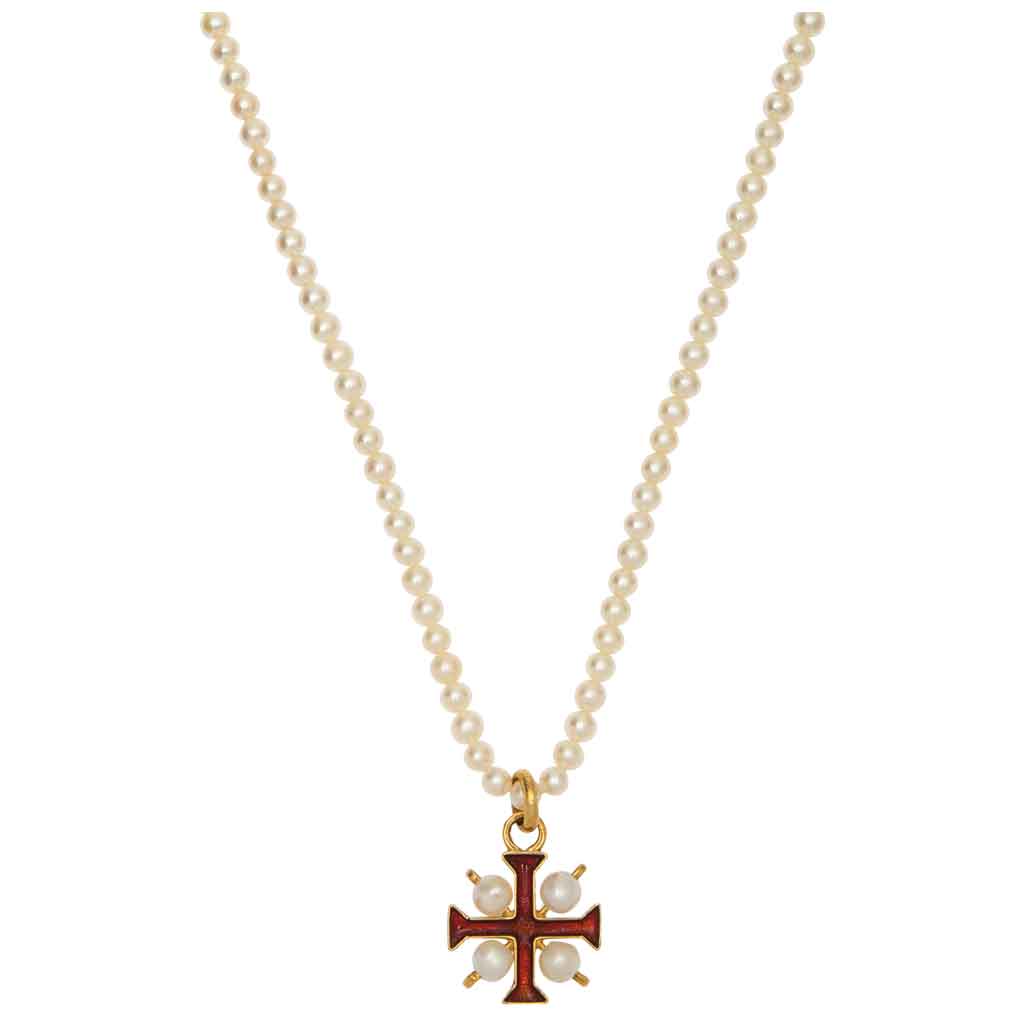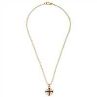 COLLAR DE PERLAS Y PENDIENTE CON ESMALTE EN ORO AMARILLO DE 18K
