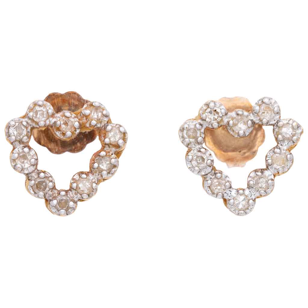 Subasta 1203, Lote # 110 PAR DE BROQUELES EN ORO AMARILLO DE 14K Y 10K Poste y contra (una en oro de 10K). Peso: 1.4 g. Tamaño: 1.0 x 0.9 cm aprox. Diamantes corte 8x8 ~0.16 ct (cuatro simulantes) Estimado $6,000-7,000