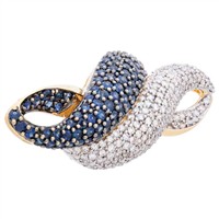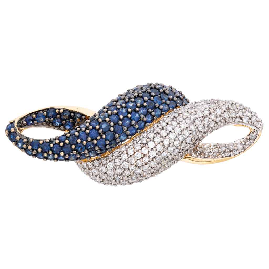 PENDIENTE / PRENDEDOR CON ZAFIROS Y DIAMANTES EN ORO AMARILLO DE 18K