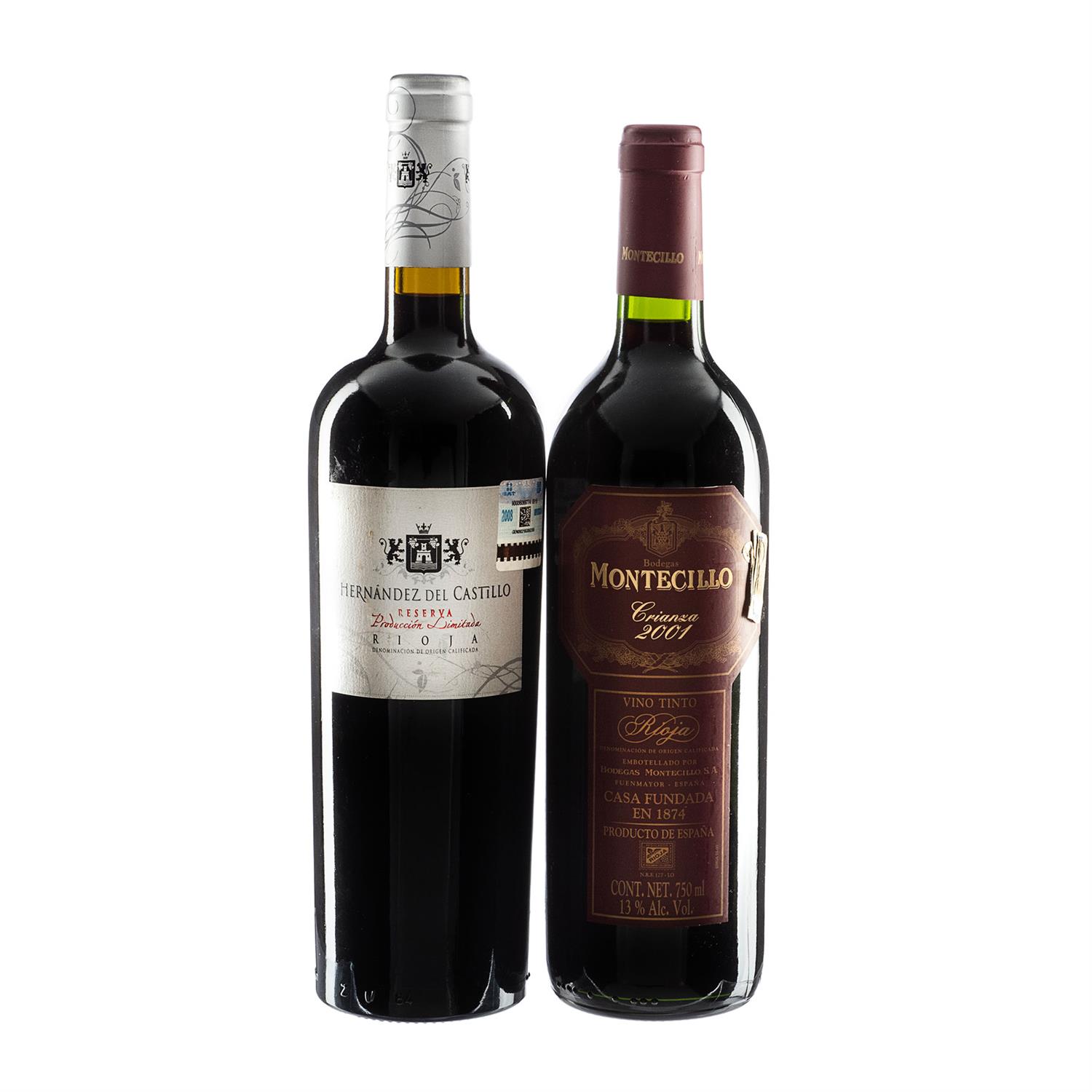 Subasta 1297T, Lote # 59 Vinos de Rioja: <a) Hernandez del Castillo, "Reserva". 2005 Rioja, España. b) Montecillo Crianza. 2001. Rioja, España. Total de piezas: 2. Estimado $1,000-1,500