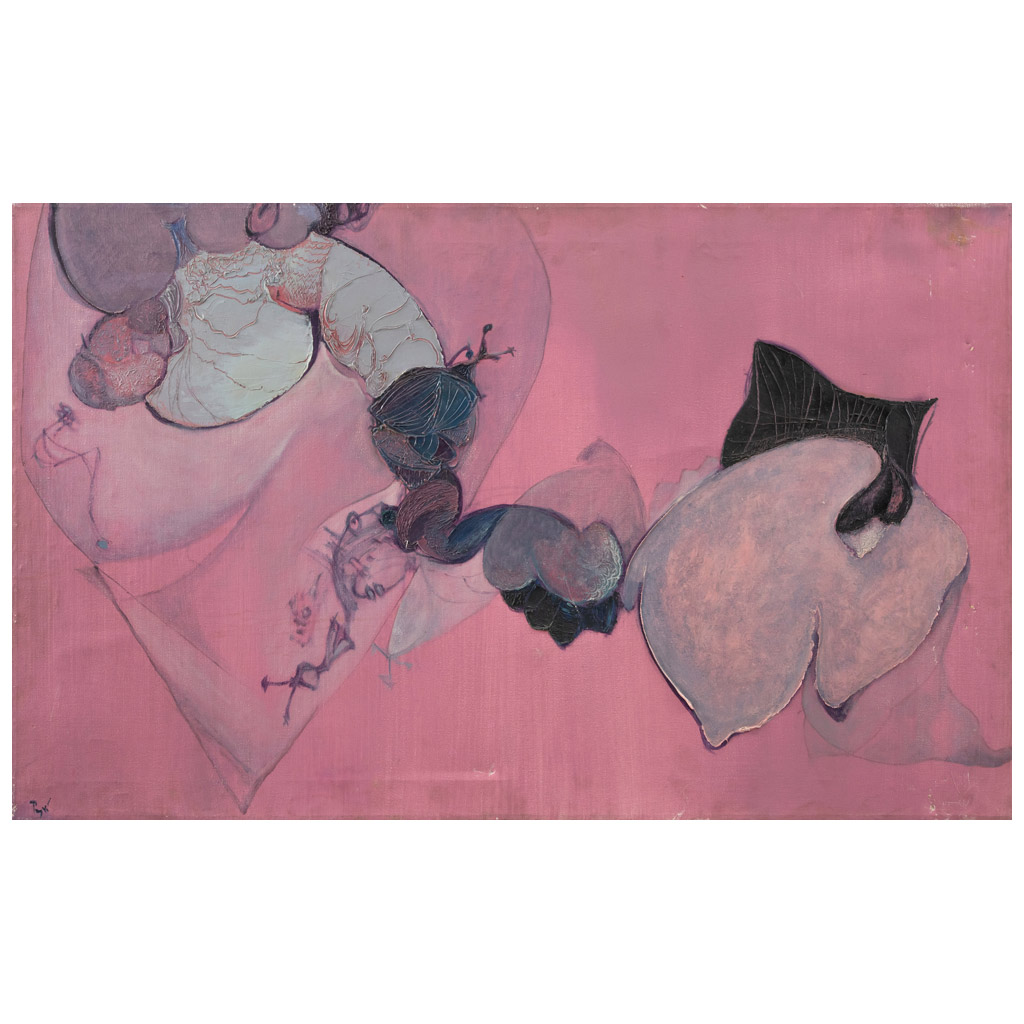 ANTONI PEYRÍ (España, 1924 - España, 2017) Cadena erótica Firmado al frente. Firmado y fechado 67 al reverso Óleo sobre tela Publicado en: sitio oficial del artista: www.antonipeyri.com Con fragmento de etiqueta de Galería de Antonio Souza. Presenta detalles de conservación. 65 x 105.5 cm Estimado $46,000-60,000