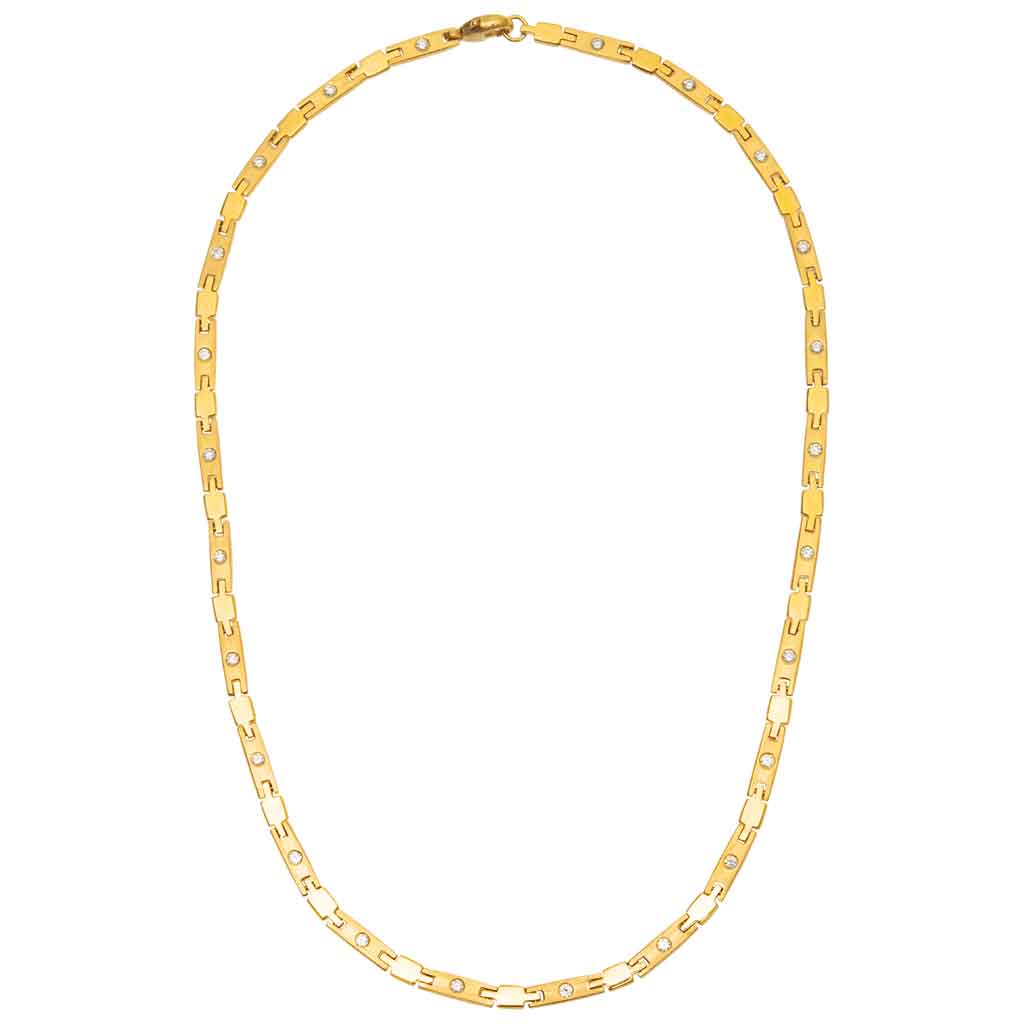 Subasta 1203, Lote # 38 GARGANTILLA CON DIAMANTES EN ORO AMARILLO DE 18K Broche de mosquetón. Peso: 31.9 g. Largo: 38.5 cm aprox. Diamantes corte brillante ~0.75 ct Estimado $70,000-80,000