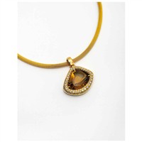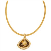 GARGANTILLA Y PENDIENTE CON CITRINA Y DIAMANTES EN ORO AMARILLO DE 18K