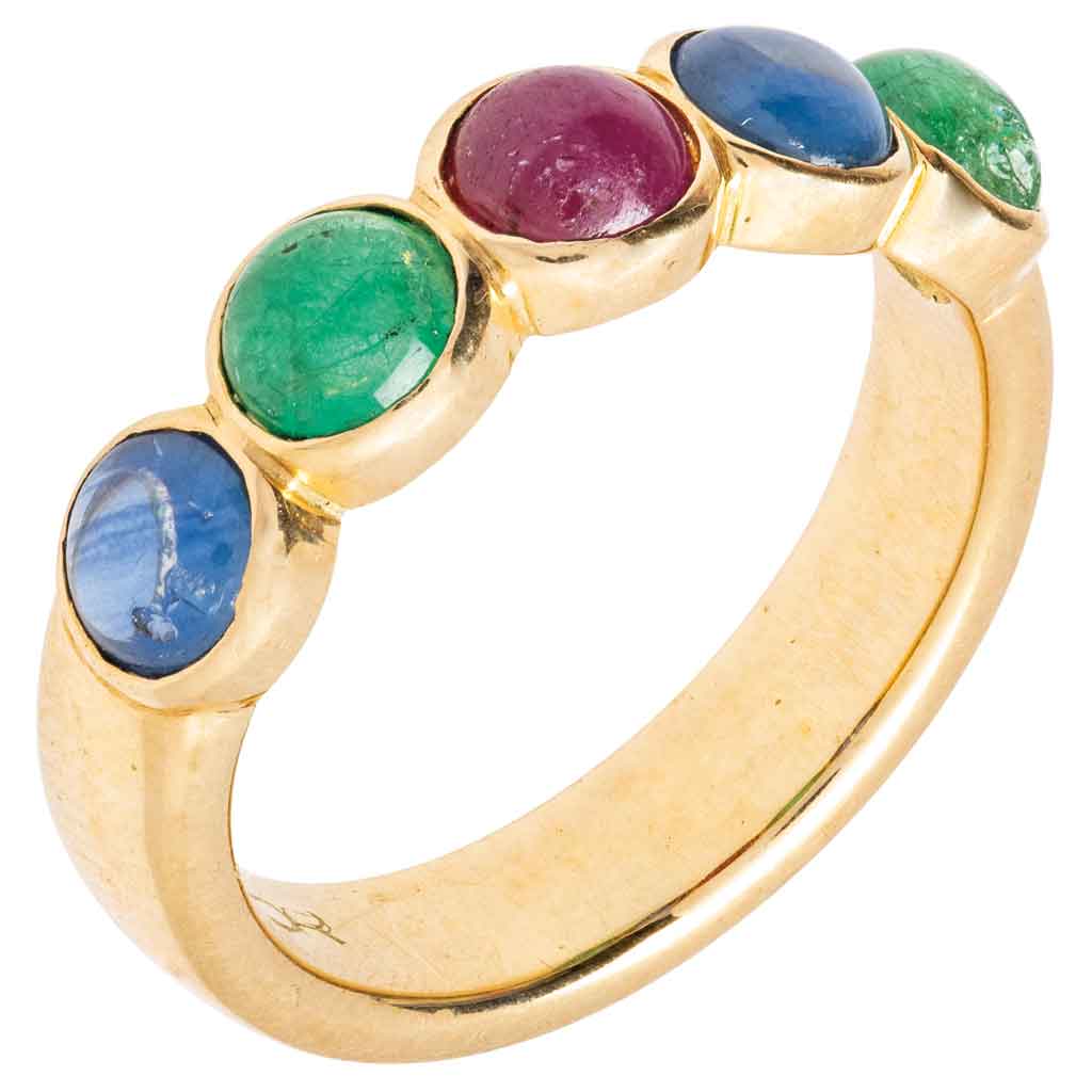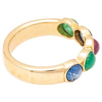 ANILLO CON ESMERALDAS, ZAFIROS Y RUBÍ EN ORO AMARILLO DE 18K