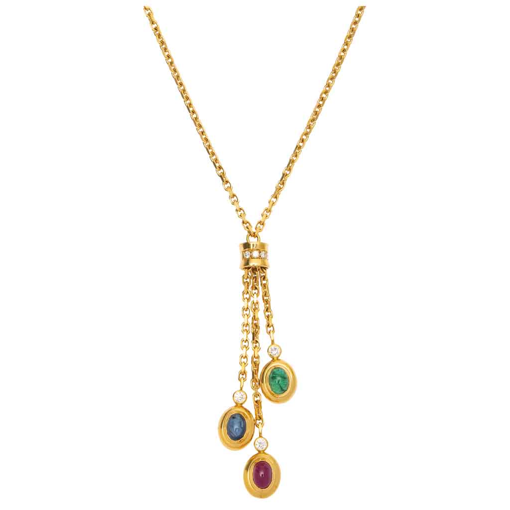 GARGANTILLA CON ESMERALDA, ZAFIRO, RUBÍ Y DIAMANTES EN ORO AMARILLO DE 18K
