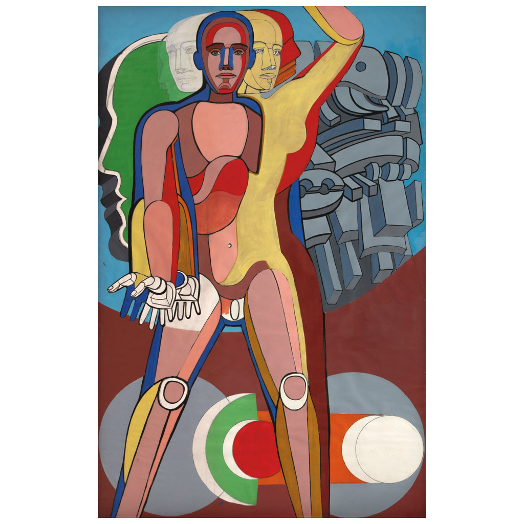 ARNOLD BELKIN (Canadá, 1930 - Ciudad de México, 1992) Estudio para el mural Omnisciencia Firmado y fechado 84 Acrílico sobre papel Agradecemos a Ariela Belkin, hija del artista, por la verificación de autenticidad de esta obra, julio de 2025. "Omnisciencia" es uno de los seis murales que realizó Arnold Belkin entre 1984 y 1989 en la Universidad Autónoma Metropolitana de la Unidad Iztapalapa. El mural se ubica en la fachada norte del edificio S, el cual lamentablemente resultó dañado durante el sismo del 19 de septiembre de 2017. En diciembre de 2018 se hizo una restauración para esta obra y dos más: "Muerte a la ignorancia y transformación de la sociedad", ubicado en el edificio L y "El hombre y el cosmos: Génesis de un nuevo orden" localizado en la fachada del edificio E. 120 x 77.75 cm Estimado $38,000-50,000