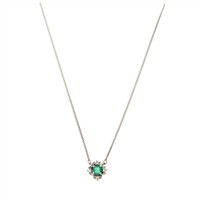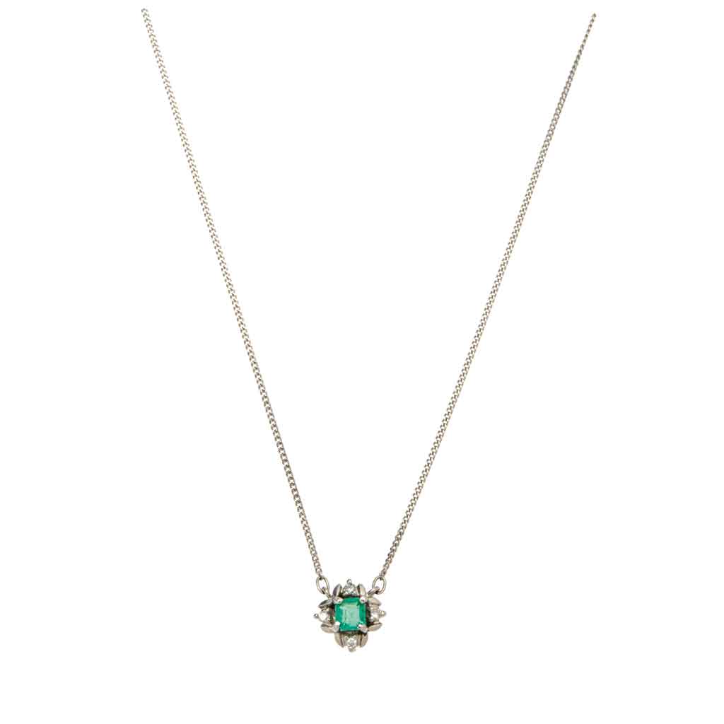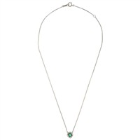 Subasta 1203, Lote # 121 GARGANTILLA CON ESMERALDA Y DIAMANTES EN PLATINO Broche de reasa. Peso: 2.5 g. Largo: 41.0 cm aprox. Esmeralda corte cuadrado ~0.20 ct Diamantes corte brillante ~0.02 ct Estimado $7,000-8,000