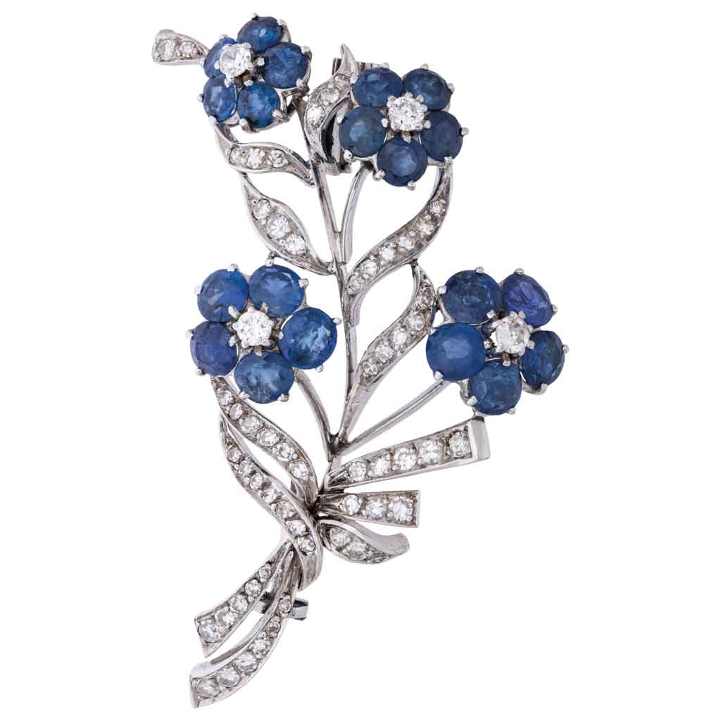 PRENDEDOR CON ZAFIROS Y DIAMANTES EN PLATA PALADIO
