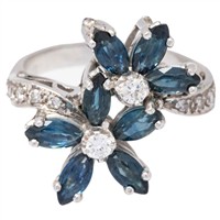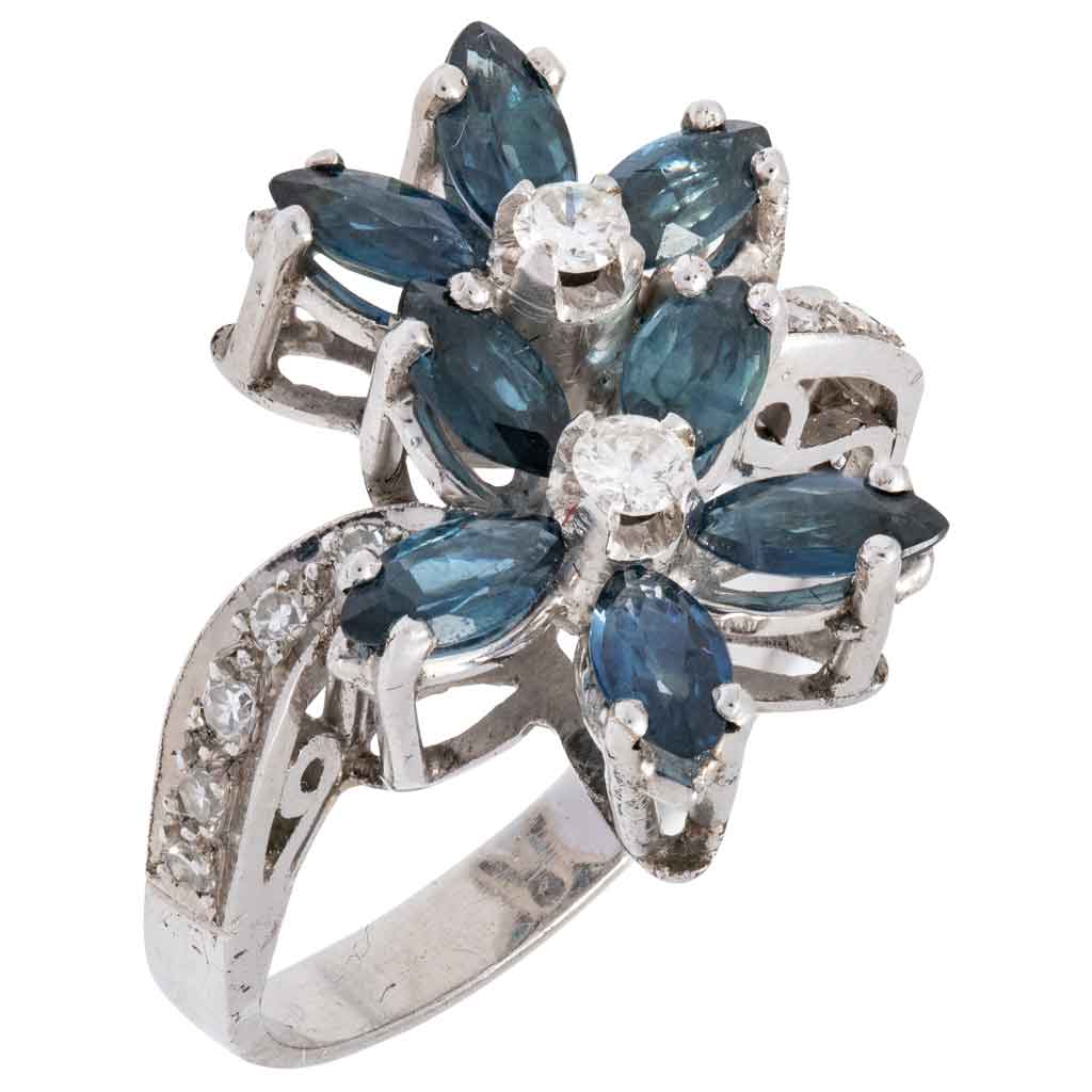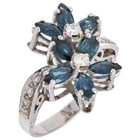 ANILLO CON ZAFIROS Y DIAMANTES EN PLATA PALADIO